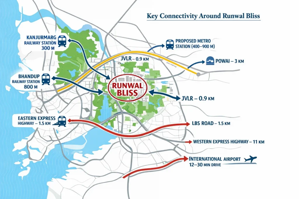 Runwal Bliss kanjurmarg is a premium residential township by the renowned Runwal Group, strategically located in Kanjurmarg East, Mumbai. Spread across 36 acres, the project is uniquely designed around a 150-year-old banyan tree, offering a rare blend of nature and luxury living. Inspired by successful townships like Runwal Garden Vista, Runwal Bliss kanjurmarg has emerged as one of the most sought-after residential developments in the central suburbs. The location of Runwal Bliss Kanjurmarg ensures excellent connectivity to major business districts and social infrastructure. It is just minutes away from Kanjurmarg Railway Station, the Eastern Express Highway, and the upcoming Metro Line 4, making commuting across Mumbai hassle-free. Its proximity to Powai, BKC, and Eastern Freeway enhances its appeal for working professionals and families alike. The project offers a variety of thoughtfully designed configurations including 2, 3, & 4 BHK apartments. The Runwal Bliss kanjurmarg price starts at approximately ₹ 2.60 crores for a 2 BHK and goes up to ₹4.67 crores for premium 3 and 4 BHK units. Each residence is planned to maximize natural light, ventilation, and comfort, catering to both end-users and investors. Runwal Bliss kanjurmarg is packed with world-class amenities such as a swimming pool, gym, yoga and meditation zone, mini theatre, library, banquet hall, cricket pitch, squash court, and more. Dedicated areas for children, senior citizens, and landscaped open spaces make it a holistic living environment. With retail outlets and healthcare facilities within the township, it promises a self-sufficient lifestyle. In summary, Runwal Bliss is not just a home; it’s a lifestyle upgrade. Its perfect mix of modern living, green surroundings, and superb connectivity makes it a top residential choice in Mumbai’s central suburbs.